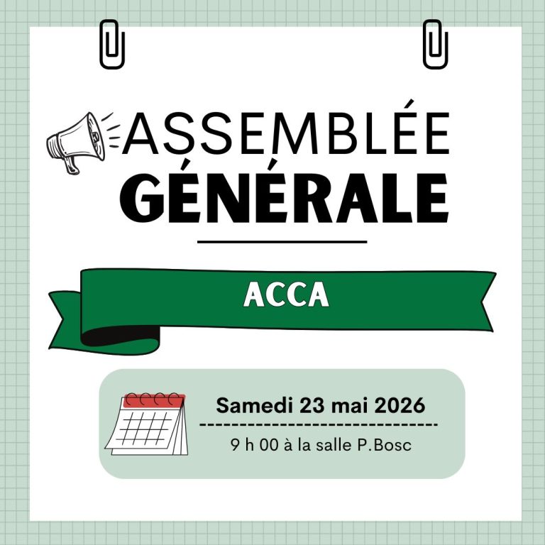 L’ACCA de Sadirac vous convie pour son assemblée générale le samedi 23 mai à 9h à la salle Pierre Bosc.