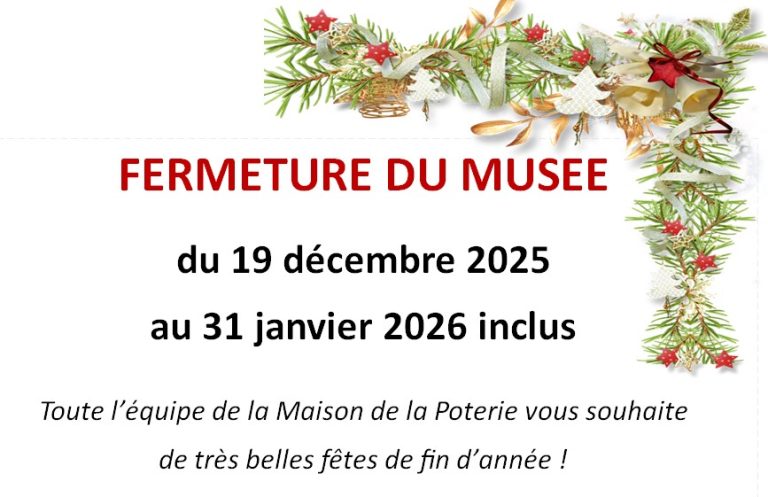Le musée sera fermé du 19 décembre 2025 au 31 janvier 2026, période consacrée à la préparation de la programmation 2026 ainsi que de notre prochaine exposition.