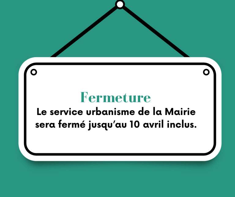 Le service urbanisme sera exceptionnellement fermé jusqu’au 10 avril. Pout tout renseignement vous pouvez contacter l’accueil de la mairie. Merci par avance pour votre compréhension.