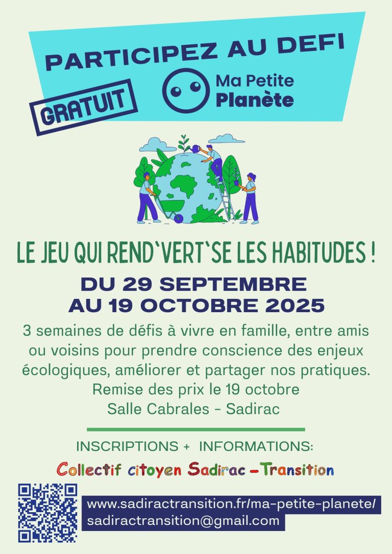 Organisé par l’association Collectif Citoyen Sadirac Transition, ce challenge en équipes propose des défis écologiques à relever entre ami.e.s, famille, voisin.e.s ou collègues.
