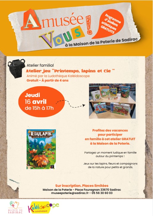 Atelier jeu familial « Printemps, lapins et Cie » animé par Kaléidoscope
