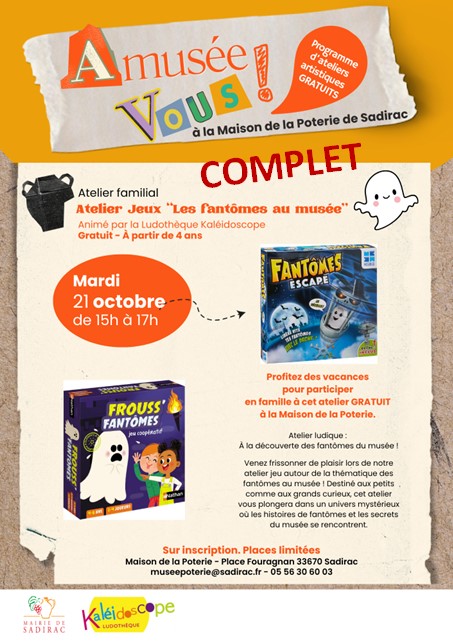 Venez frissonner de plaisir lors de notre atelier jeu autour de la thématique des fantômes au musée ! Destiné aux petits comme aux grands curieux, cet atelier vous plongera dans un univers mystérieux où les histoires de fantômes et les secrets du musée se rencontrent.