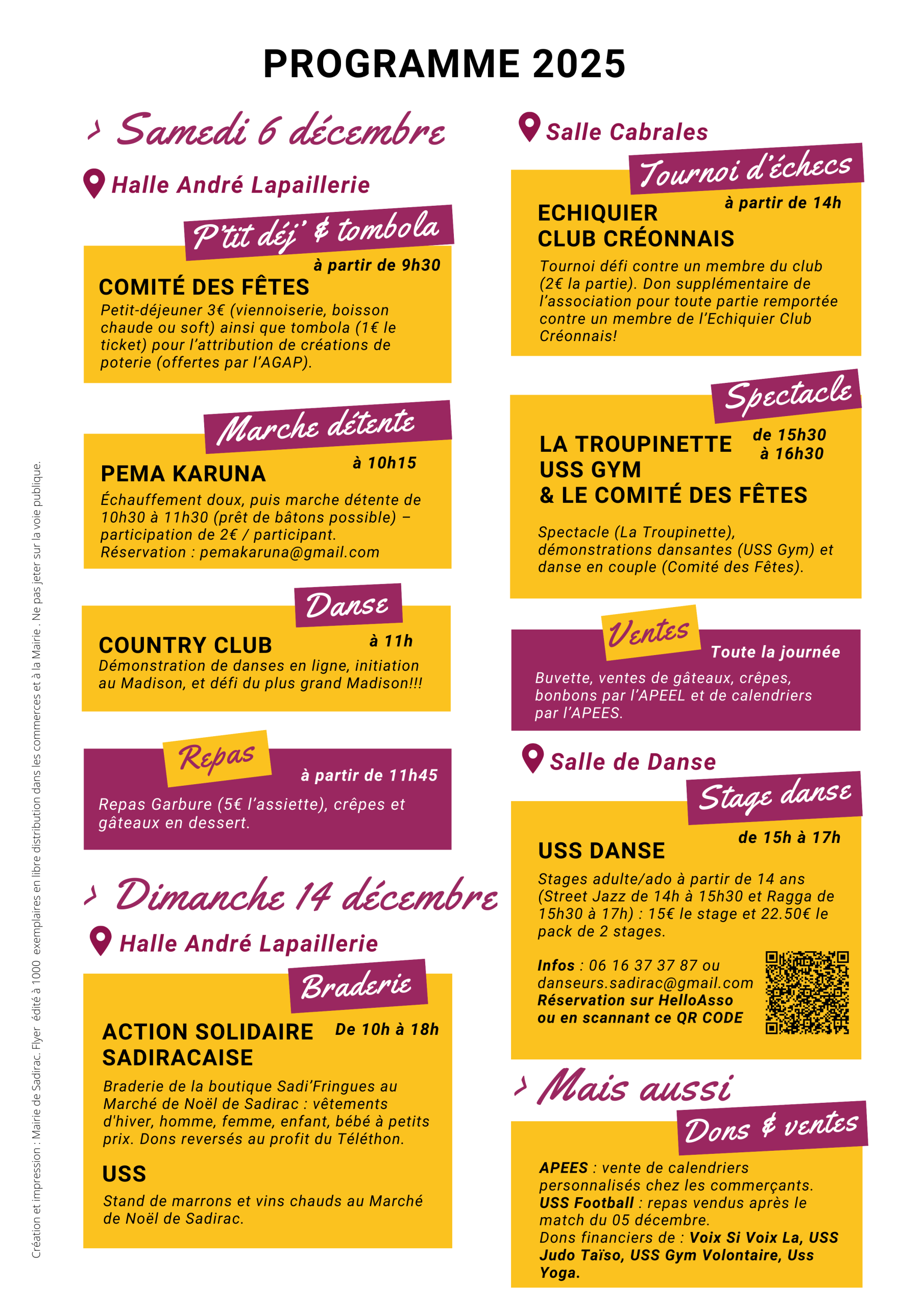Le samedi 6 décembre, les associations sadiracaises, en partenariat avec la commune de Sadirac, unissent leurs forces pour soutenir le Téléthon. Cette mobilisation locale, désormais incontournable, propose un programme riche et convivial afin de collecter des fonds en faveur de la recherche et de l’accompagnement des familles touchées par les maladies neuromusculaires.