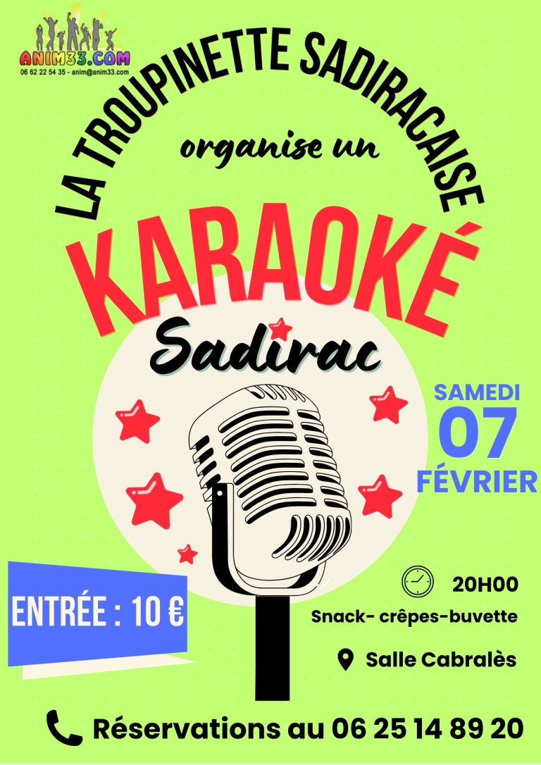 L’association la Troupinette Sadiracaise organise une « soirée karaoké », le samedi 7 février à 20h00 à la Salle Cabrales.